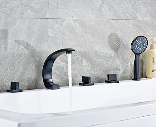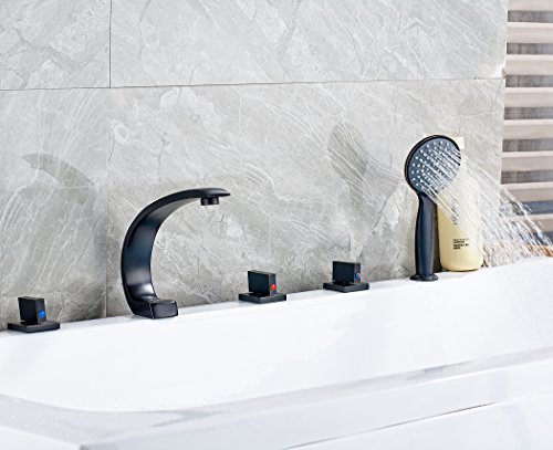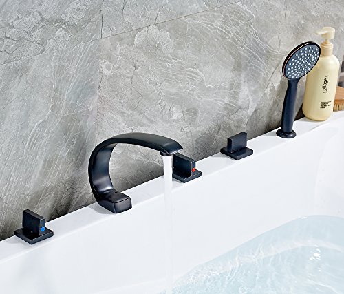 Rozin 欧州の様式 浴槽 風呂桶用 じゃぐち オイルは青銅をこすり バスタブの蛇口 混合栓 ハンドシャワー装備