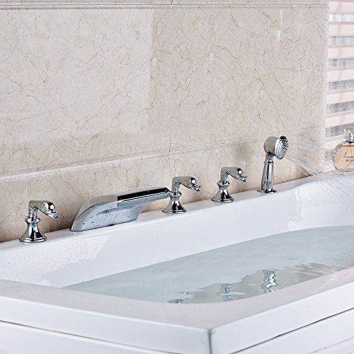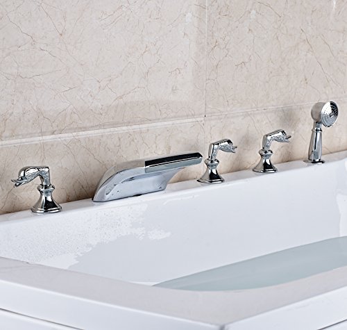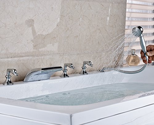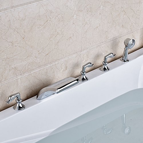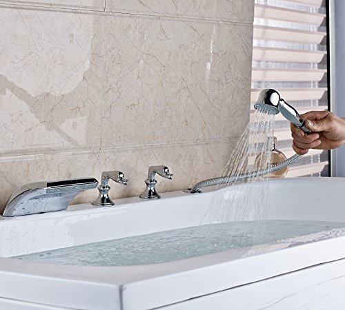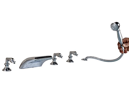 Rozin クロムめっき バスタブの蛇口 混合水栓 滝型 浴槽 風呂桶用 じゃぐち ハンドシャワー装備