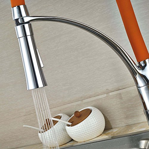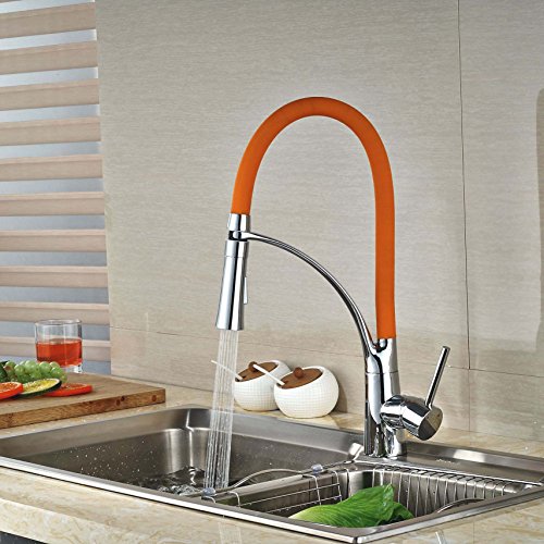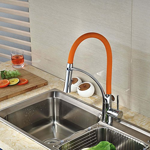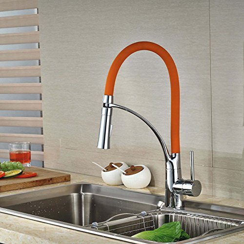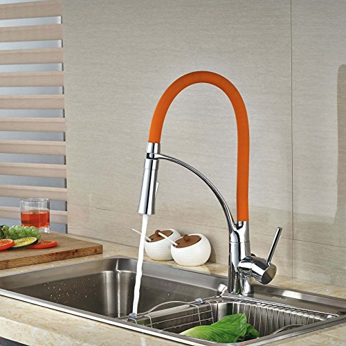 Rozin クロムめっき 洗面台用 蛇口 オレンジ色 台所 バスルーム用 じゃぐち 混合栓 回転可能なノズル