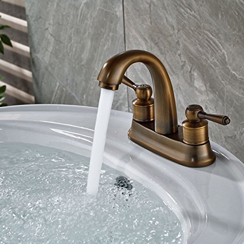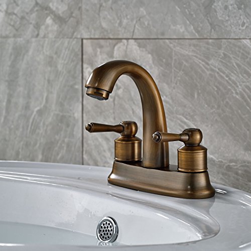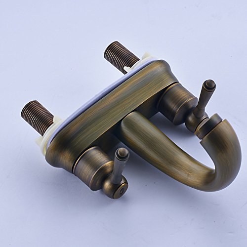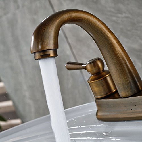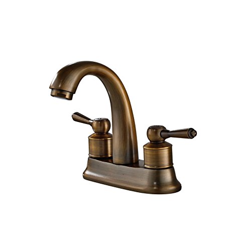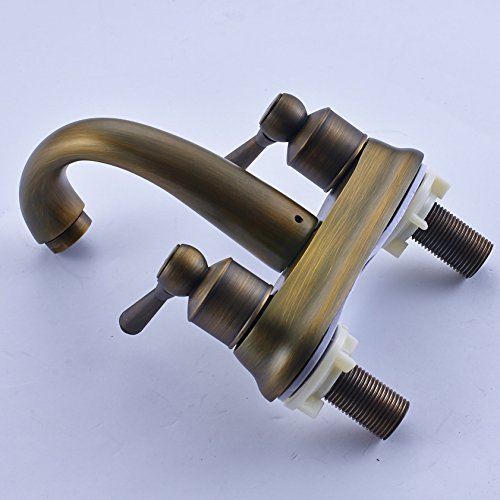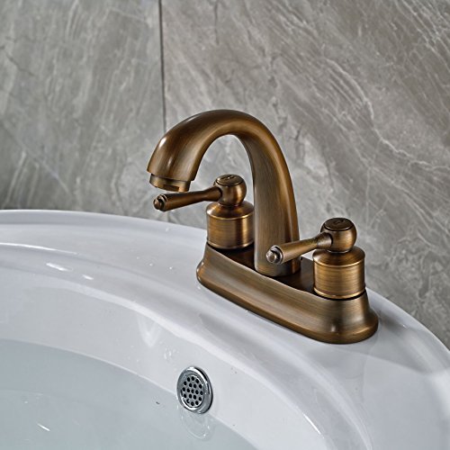 Rozin アンティーク真鍮 洗面所 流し台用 蛇口 デュアルレバー レトロスタイル 浴室 シンク用 混合水栓
