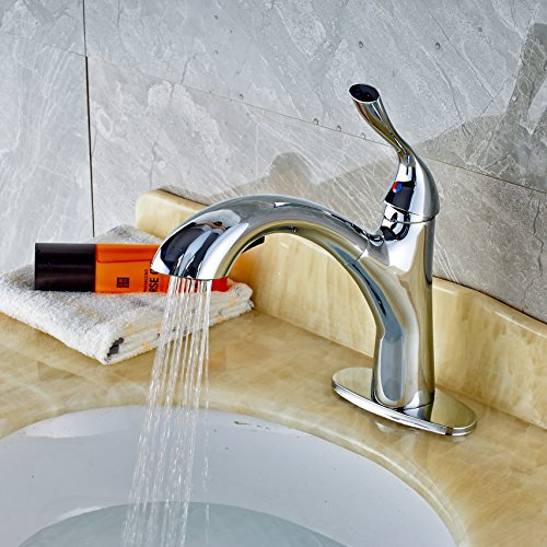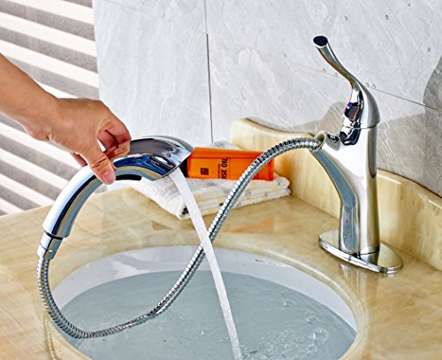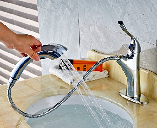 Rozin 浴室 洗面所 シンク用 蛇口 混合栓 クロムめっき 洗面所 流し台用 じゃぐち プルアウトスプレーノズルを装備