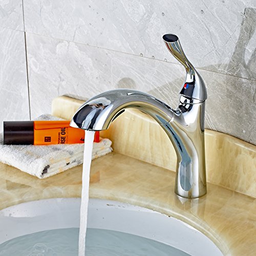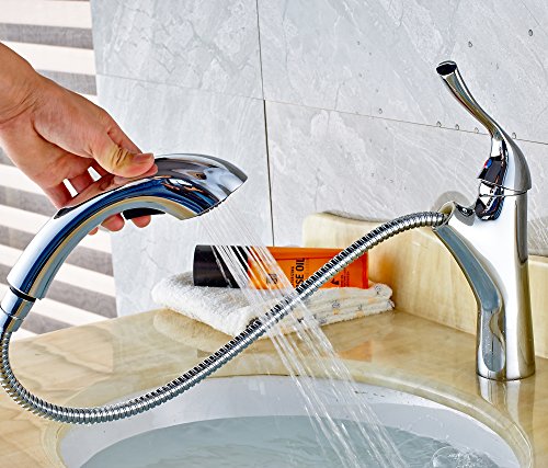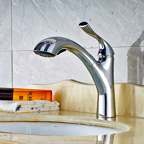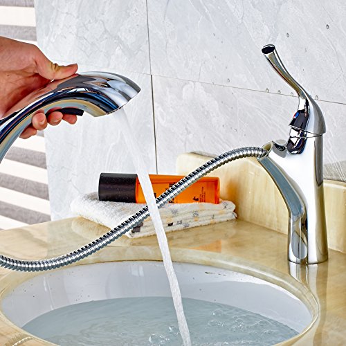 Rozin 多機能の 浴室 洗面所用 蛇口 クロムめっき 流し台 洗面台用 じゃぐち 混合水栓 プルアウトスプレーノズルを装備