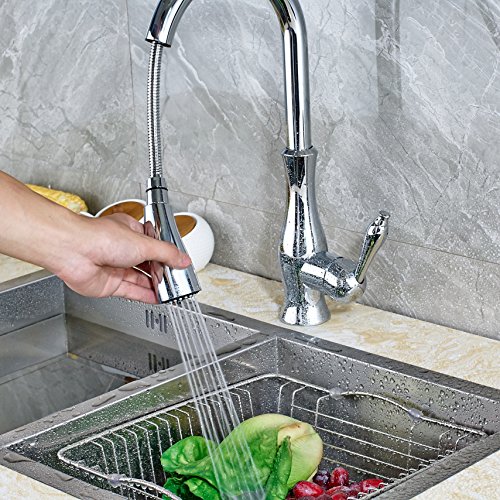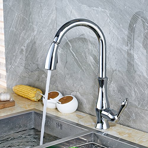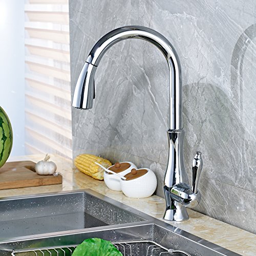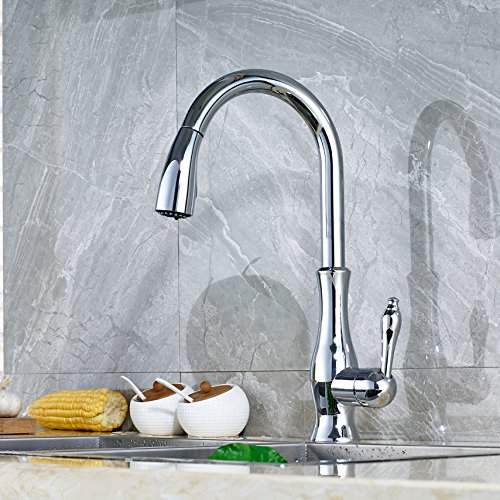 Rozin キッチン用 じゃぐち 混合水栓 クロムめっき 洗面所 台所用 蛇口 プルアウトスプレーノズルを装備