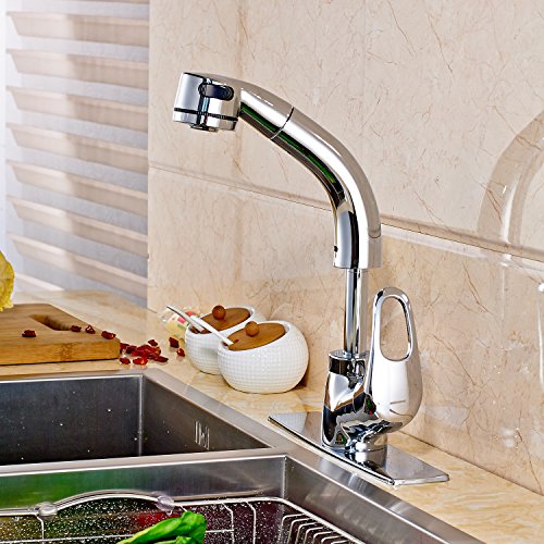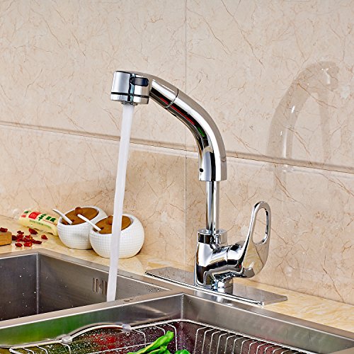 Rozin クロムめっき 台所 シンク用 蛇口 プルアウトスプレーノズルを装備 多機能 キッチン用 じゃぐち 混合水栓