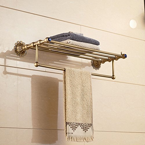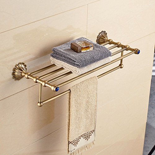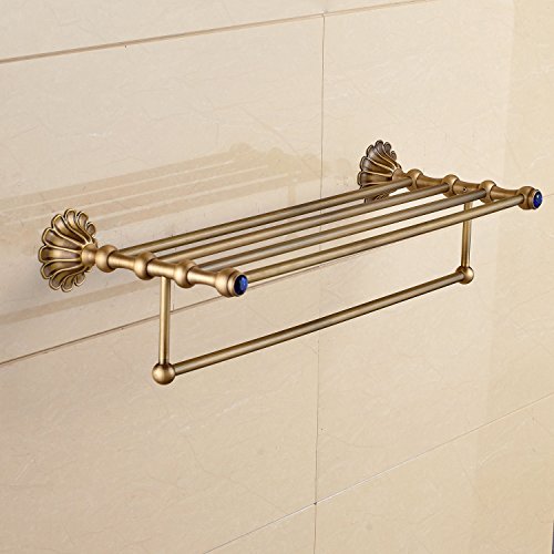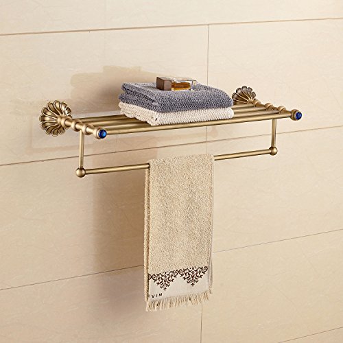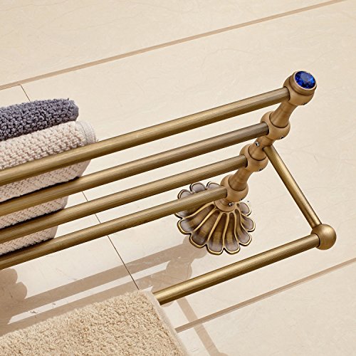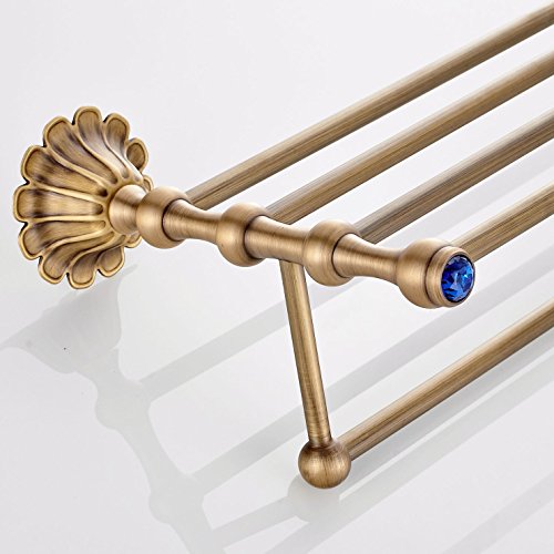 Rozin アンティーク真鍮 バスルーム棚 タオル ラック ブルークリスタル 浴室 お風呂用 タオル バスケット ホルダー