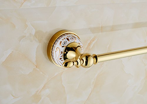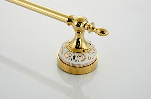 Rozin ゴールド タオルバー タオル掛け 壁取付型 タオル ラック セラミックベース