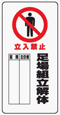 イラスト標識 WB66A 立入禁止足場組立解体 クリーンエコボード製 600×300mm