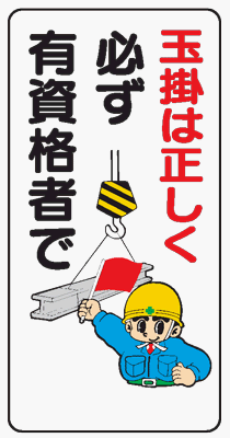 イラスト標識 WB42 玉掛は正しく必ず有資格者で クリーンエコボード製 600×300mm