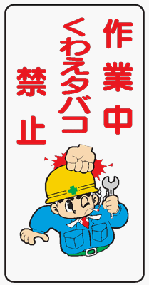 イラスト標識 WB79 作業中くわえタバコ禁止 クリーンエコボード製 600×300mm