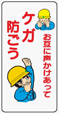 イラスト標識 WB30 お互いに声かけあってケガ防ごう クリーンエコボード製 600×300mm