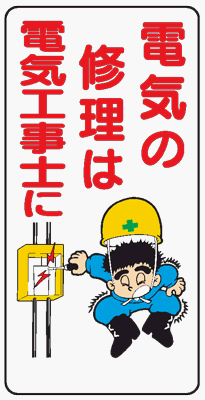 イラスト標識 WB34 電気の修理は電気工事士に クリーンエコボード製 600×300mm