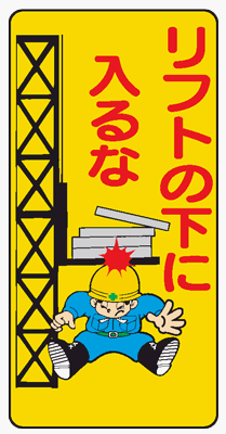 イラスト標識 WB35 リフトの下にはいるな クリーンエコボード製 600×300mm