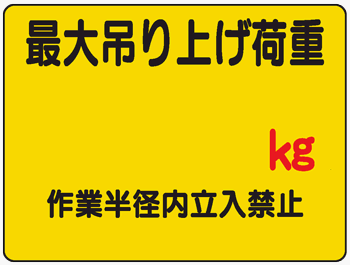 イラスト標識 WE13 最大吊り上げ荷重 クリーンエコボード製 450×600mm