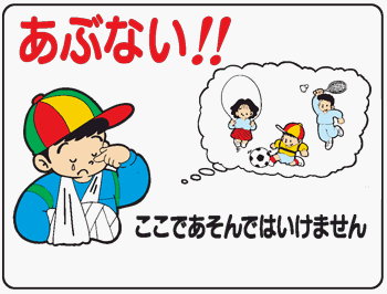 イラスト標識 WE52 あぶない!!ここであそんではいけません(工場一般用) クリーンエコボード製 450×600mm