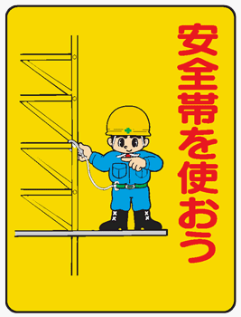イラスト標識 WE19 安全帯を使おう クリーンエコボード製 600×450mm