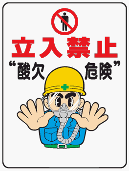 イラスト標識 WE26 立入禁止酸欠危険 クリーンエコボード製 600×450mm