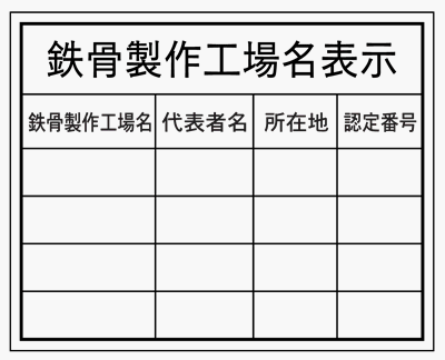 鉄骨製作工場名表示 HA8 クリーンエコボード製 400×500mm
