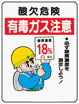 イラスト標識 WE27 酸欠危険有毒ガス注意 クリーンエコボード製 600×450mm