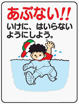 イラスト標識 WE39B あぶない!!いけに、はいらないようにしよう。 クリーンエコボード製 600×450mm