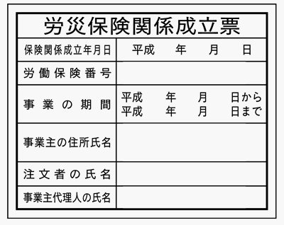 労災保険関係成立票 HA4 クリーンエコボード製 400×500mm