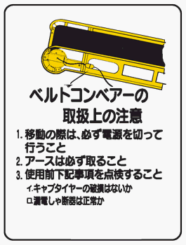 イラスト標識 WE41 ベルトコンベアーの取扱上の注意 クリーンエコボード製 600×450mm