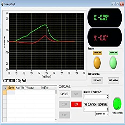 - PC上で単軸、2軸角度のグラフィック表示。データ収集においてロギング機能を含み、ワイヤレス Bluetooth 接続を利用する為に。ユーザーは分析のためキャプチャおよびExcel形式でデータとパラメーターを保存出来ます。振動データ収集およびデータ出力可能。