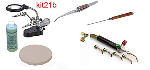 デラックス宝石付: Solderingボード、ハニーコームのタングステン処理されたはんだピック・artorch完了漬ける束8ozサードハンドホルダーの使用を5つのヒントの米国製のセルフ拡大鏡の頭部とシャンクをライトピンセットファイバーグリップストレートピンセット