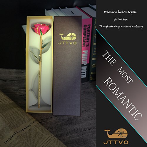 JTTVO プレゼント 女性 24K金箔のバラ ローズ 花 永遠なラブ ロングのステムの盛りローズ バレンタインデー、レディース プレゼント結婚祝い、 誕生日 女性 結婚記念日、卒業、母親、恩師に