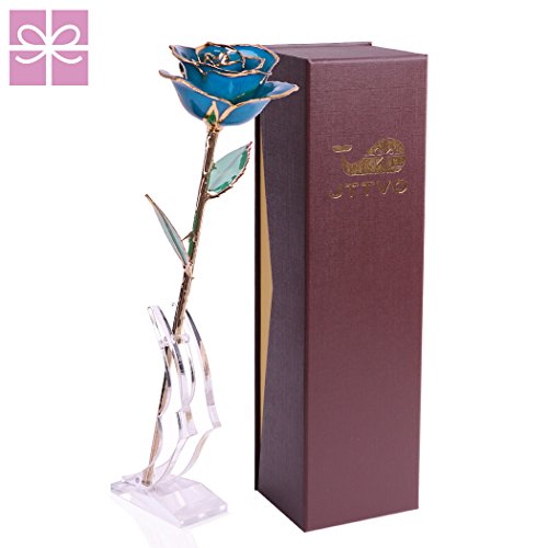 のためのギフト彼女誕生日結婚記念日、24 KゴールドコーティングローズPreserved Forever by jttVo、ベストクリスマスギフトレディースママ妻Girlsガールフレンド、バレンタイン'dayギフト ブルー JTTVO PRWS