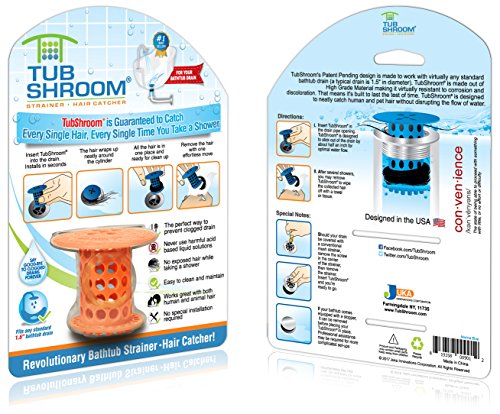 Tubshroom タブッシュルーム 特許取得 詰まらない 衛生的 な ヘアキャッチャー ペット 抜け毛 対策 にも (オレンジ) [正規代理店商品]