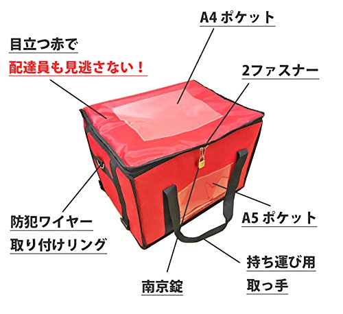 JUST style 【大容量 宅配ボックス 】大型 60リットル 戸建て [ 盗難防止ワイヤー ダイヤル錠 南京錠付き ] 3ポケット 軽い 折りたたみ可能 (レッド,通常タイプ)