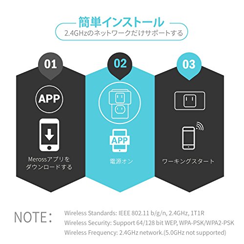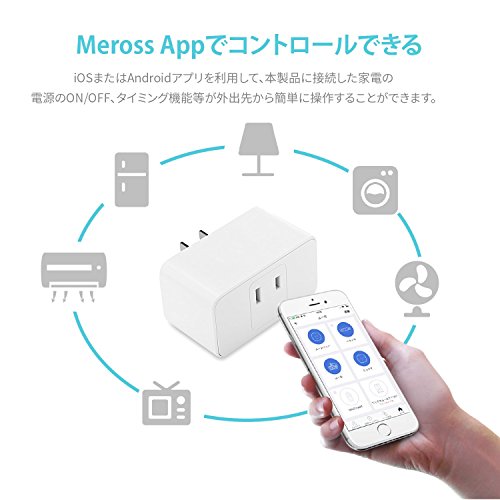 - 「アプリでコントロールできる」スマホで専用アプリ(meross)をインストールして、いつでもどこでもスマホからスマートコンセントに接続した機器の電源オフができます。消し忘れなどの心配はありません。省エネルギーもできます。(2.4GHzWiFiしか対応しません。)