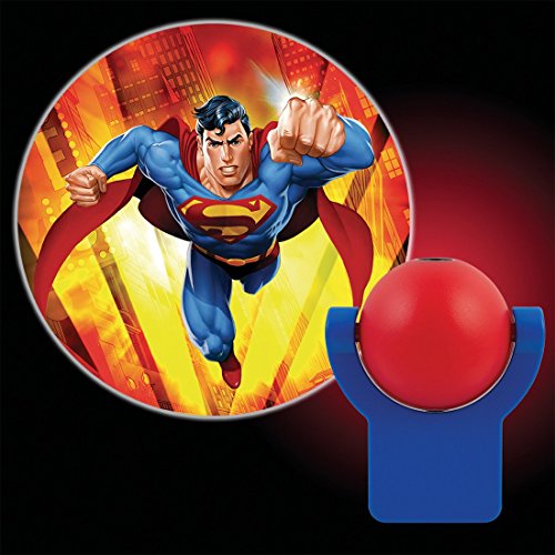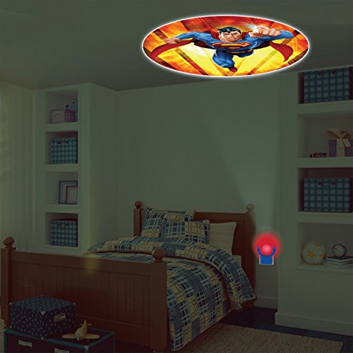 Globe rotates for easy image projection. Transform your child's room with this Projectables night light featuring the dc comics superman! the Projectables LED night light projects a 3 foot colorful image on the wall, ceiling, or floor. The projectable uses light-sensing technology to turn on at dusk and off at dawn. Long-life, energy-efficient leds are cool to the touch making this night light safe for any room in your home. The base unit also Glows providing an ambient guide light. It's perfect for kids of all ages.
