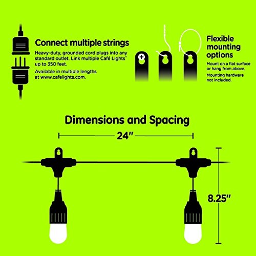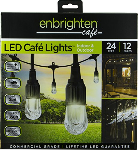 Enbrighten Café LED String Lights (24 ft.), 12 Lifetime Bulbs, Premium, Weatherproof, Shatterproof, Commercial Grade, UL Listed [並行輸入品]