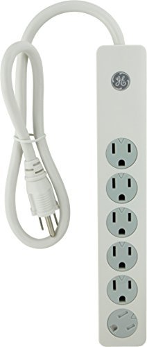 Protect your home's electronics from dangerous power surges with this six-outlet General Purpose Surge Protector from GE. Plugging directly into your existing outlets, this surge protector features six protected outlets with twist-to-lock safety covers that keep your outlets closed when not in use. The surge protection is equipped with an integrated circuit breaker and automatic shutdown technology that permanently shuts down power to the outlets in the event of a surge, ensuring protection for your electronic equipment. The GE General Purpose Six-Outlet Surge Protector Strip comes with a 450 Joules protection rating and a $45,000 connected equipment warranty. Note: This device is not a lightning arrestor, so it does not afford protection when lightning strikes nearby power lines, your home, service entrance or antenna. This product is UL listed and is backed by a limited-lifetime warranty.