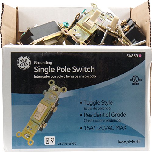 GE 54859 Single Pole接地トグルスイッチ( 30 Pieceトレイパック、アイボリー