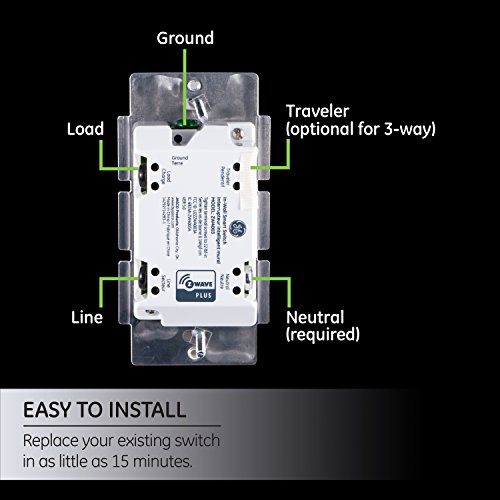 GE Z - Wave Plusワイヤレススマート照明制御スマートスイッチ、in-wall、Works with Amazon Alexa 6.10in. x 4.60in. x 2.60in. ホワイト 14292 1