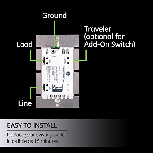 GE Z - Wave Plusワイヤレススマート照明制御スマートスイッチ、in-wall、Works with Amazon Alexa 6.10in. x 4.70in. x 2.60in. ホワイト 14299 1