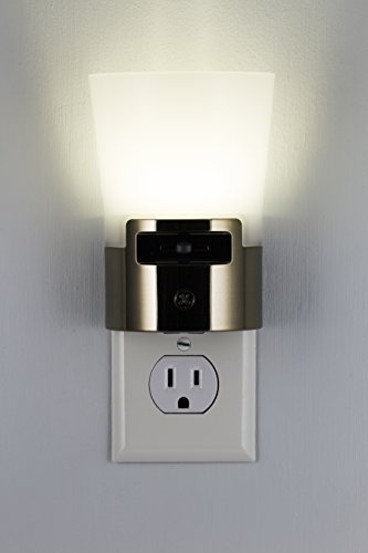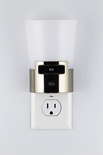GE 36266 Ultrabrite自動LED調光機能付き取り付け用燭台夜ライトプラグイン、フルレンジ減光スイッチ、最大100ルーメンSensing on / off、寝室、キッチン、廊下、and More、つや消しニッケル