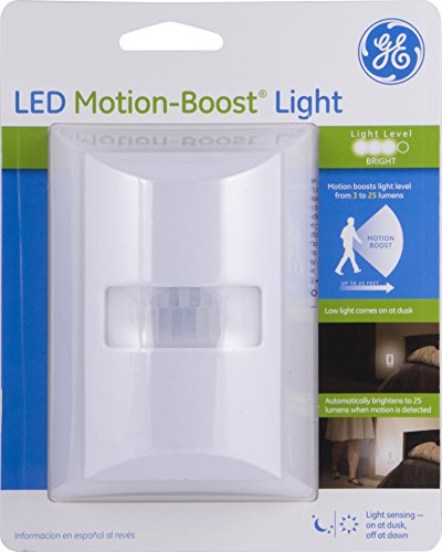 GE motion-boost LEDナイトライト、最大25ルーメン、自動on / off、ソフトホワイト、エネルギー効率的な、廊下、階段、キッチン、ガレージ、理想的ユーティリティ部屋、ランドリールーム、光沢ホワイト、38769