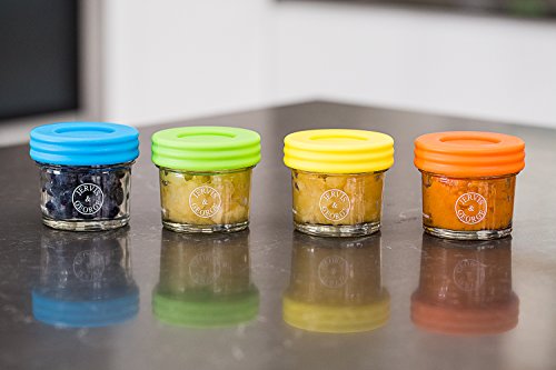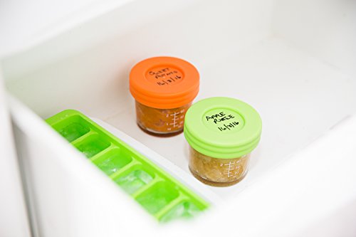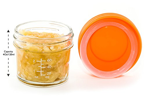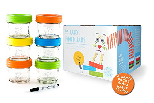CONVENIENT: Portion, store, freeze, heat and serve your homemade baby food with ease in these high quality 4oz glass jars.;MARKINGS: Each jar has easy to read measurement markings and each set contains a non-toxic wet erase marker pen allowing you to write the contents of each jar on the lid.;NO MESS LIDS: Screw on lids come with a silicone seal to ensure they are airtight, watertight and leakproof to prevent spills and keep food fresh for longer.;SAFE: 100% BPA, lead, phthalate and PVC free. Also freezer safe, dishwasher safe (top rack) and microwave safe.;LIFETIME GUARANTEE: If you don't love these glass storage jars and lids for any reason then simply return them for a full refund.