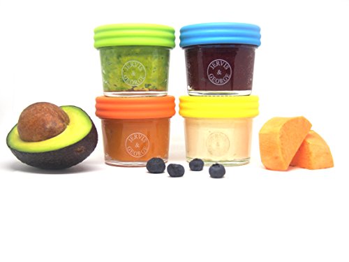 - Glass Baby Food Storage Containers - Set contains 6 Small Reusable 4oz Jars with Airtight Lids - Safely Freeze your Homemade Baby Food