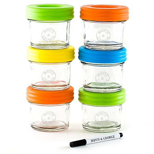 Glass Baby Food Storage Containers - Set contains 6 Small Reusable 4oz Jars with Airtight Lids - Safely Freeze your Homemade Baby Food by Jervis & George
