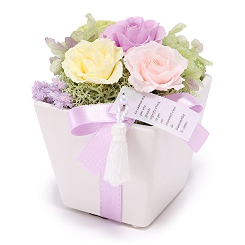 JewelzGift(ジュエルズギフト) プリザーブドフラワー 陶器ケース入り ギフト アレンジ 「ずっと綺麗なお花」 【全3色】 パステルパープル