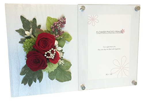 JewelzGift(ジュエルズギフト) プリザーブドフラワー フォトフレーム エレガントなホワイトウッドベース 「ずっと綺麗なお花」 ★平置き、壁掛け可★ 全2色 レッド