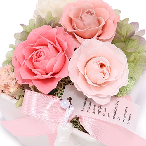 JewelzGift(ジュエルズギフト) プリザーブドフラワー 陶器ケース入り ギフト アレンジ 「ずっと綺麗なお花」 【全3色】 ローズピンク