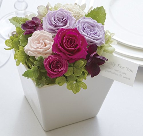 JewelzGift(ジュエルズギフト) プリザーブドフラワー 陶器ケース入り ギフト アレンジ 「ずっと綺麗なお花」 【全3色】 パープル