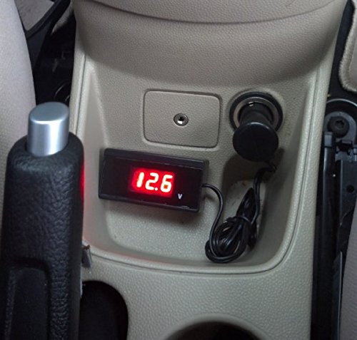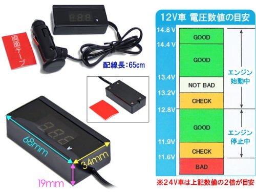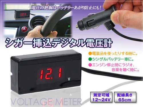 Jimeng シガー挿込 デジタル 電圧計 ボルテージメーター 約65cm配線 電流計 バッテリー チェッカー For 車 バイク
