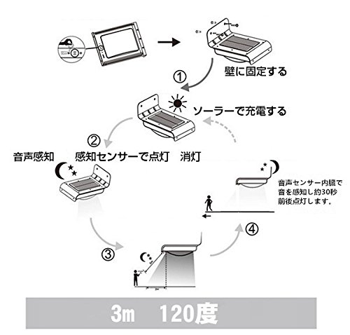 - 使い道広いソーラー充電式LEDライトなので、そして音声センサーと照度センサーが搭載していることにより、面倒な配線は一切不要です。