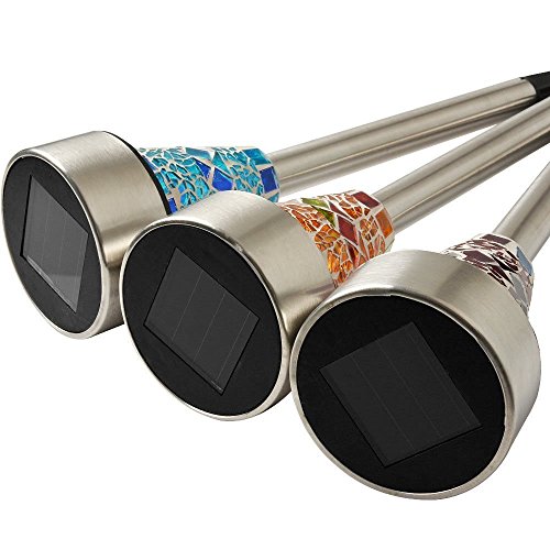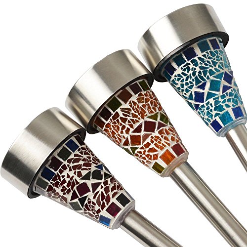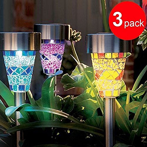 Jimeng ステンドグラス風デザインのモザイクソーラーライト 自動点灯/自動消灯 ソーラーライト 電源不要 防水 ガーデンライト(3個セット)